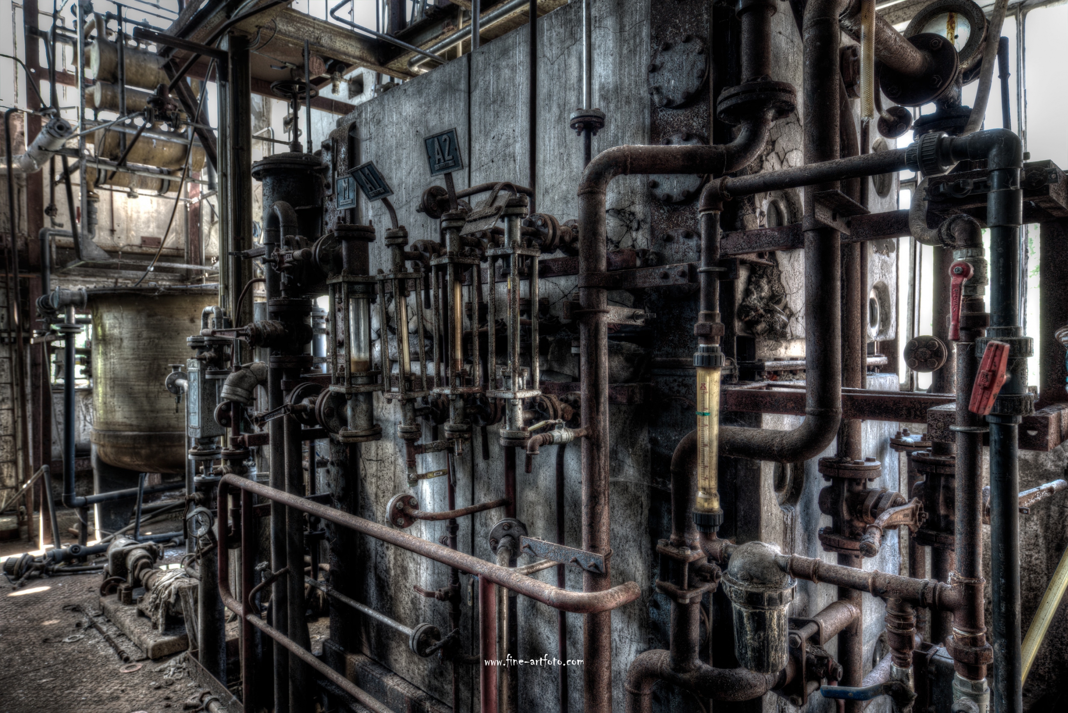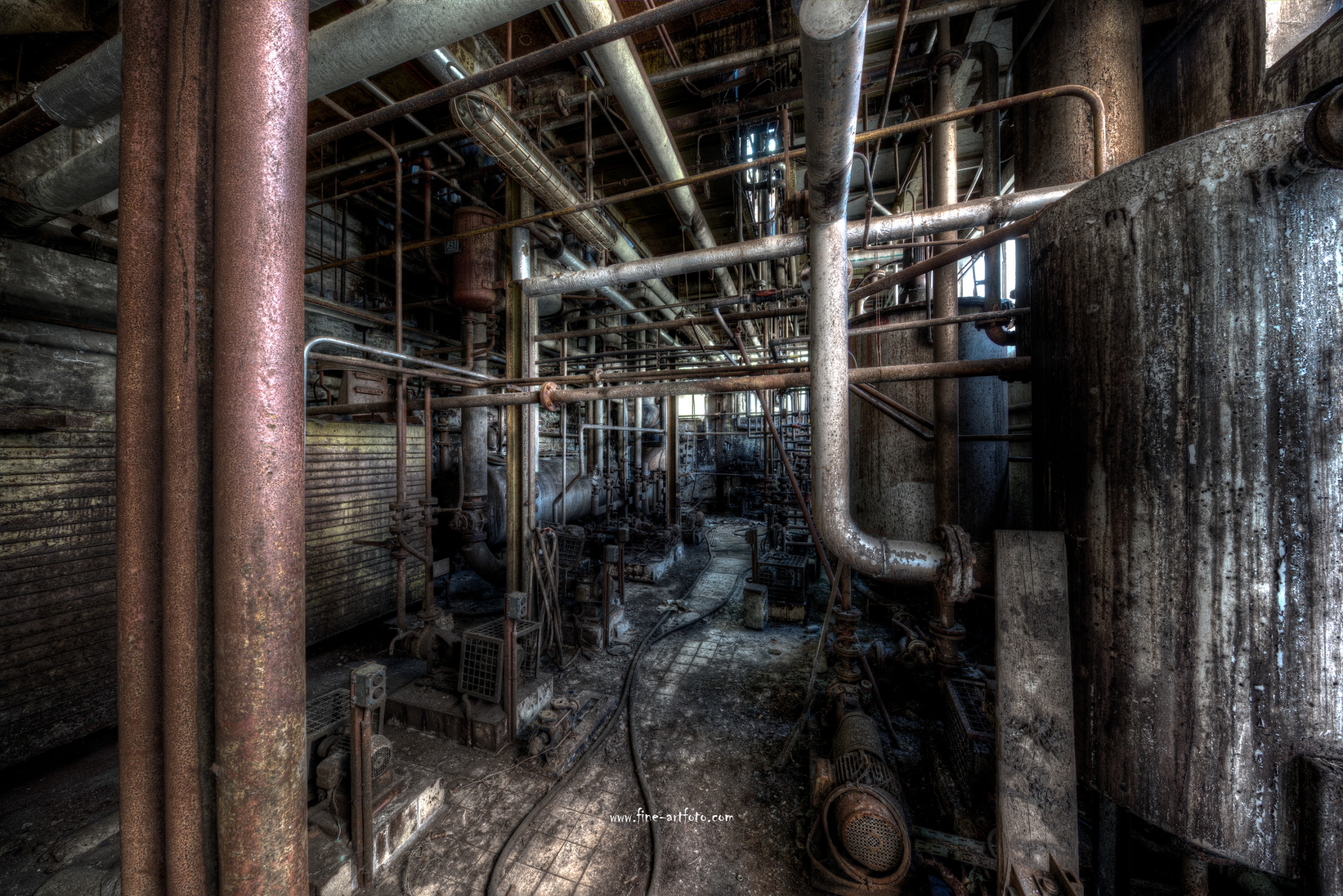 A small factory hidden somewhere in Europe. A stunning place that took my breath away. Pipes, tubes, tanks, pumps and all this connectee by a maze of pipes. Rotting away every day.