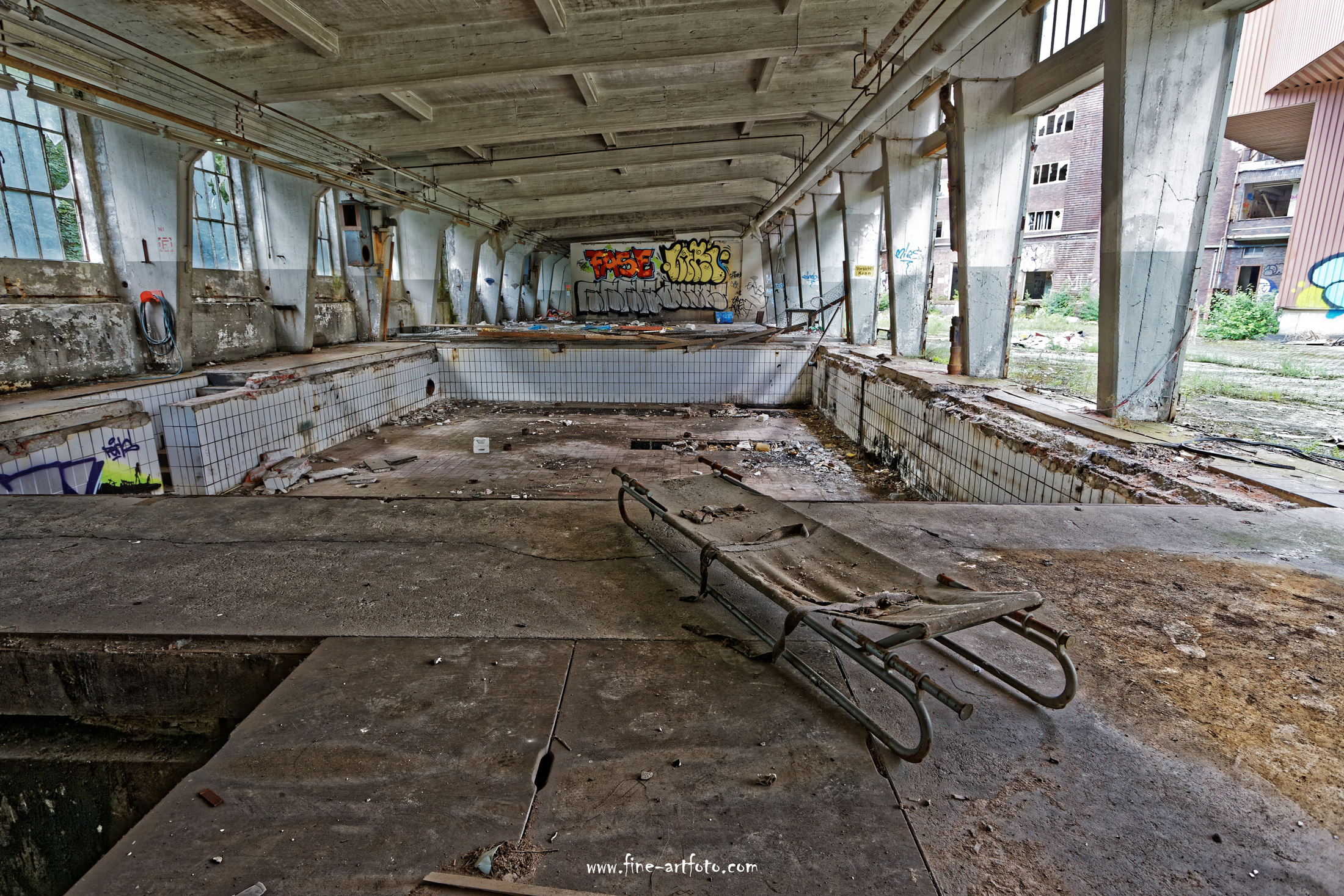 In one of Germany´s most densely populated areas this factory was for a long time at home. The whole city quarter was warmly smelling. For a lot of people this was part of their childhood and in most cases also the employer. The brand name is well known in Germany. As it allways is with old factories, there is a point in time when you have to decide rip it down and start new or leave the place and start new somewhere else. So did the company. Attractive offers in the German area of Thüringen lead the management to abandon the place in 2003. Since then the factory is deserted.
