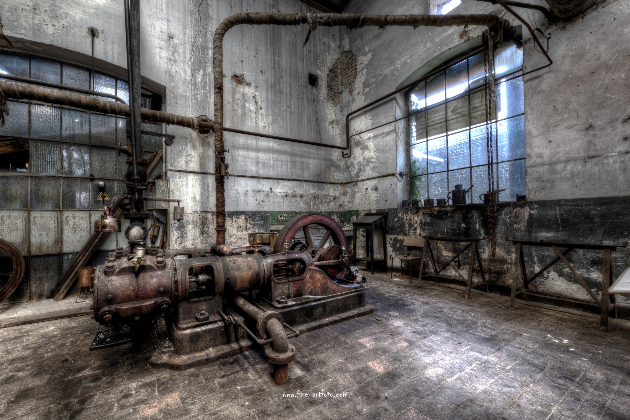 A small factory hidden somewhere in Europe. A stunning place that took my breath away. Imagine all the noise from the single and double cylinder steam engines. The wheels, the belts the turning of metall. The huge number of people in this confined place. A window into time just 70 years back.