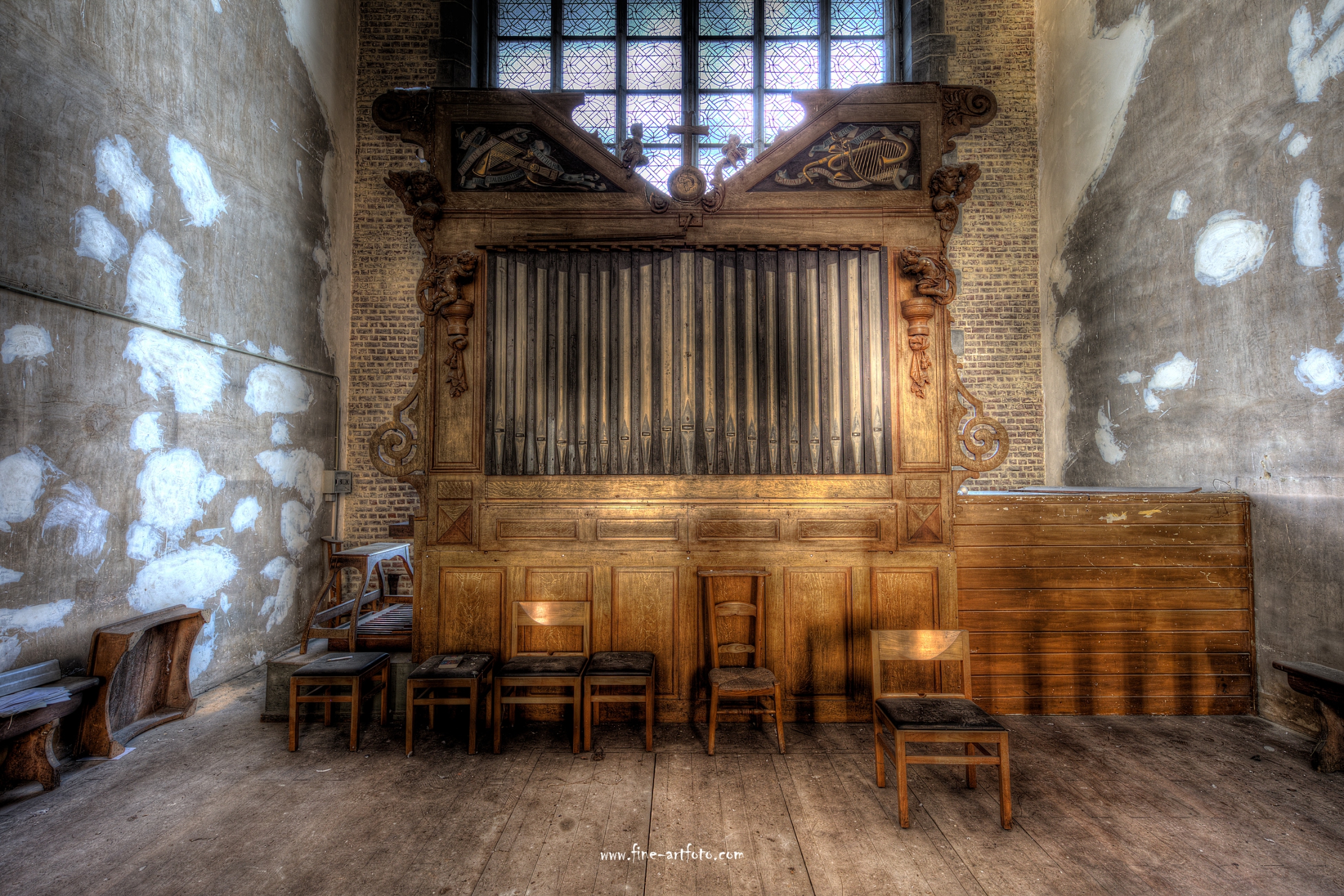 Somewhere in Europe in a major city a loss in believe lead to a lost dome. The dome has the usual entrapped moisture problems. Also the weight of the constructions shows its wear and tear signs. But you can still see the greatness of the building and somehow hear the organ playing.