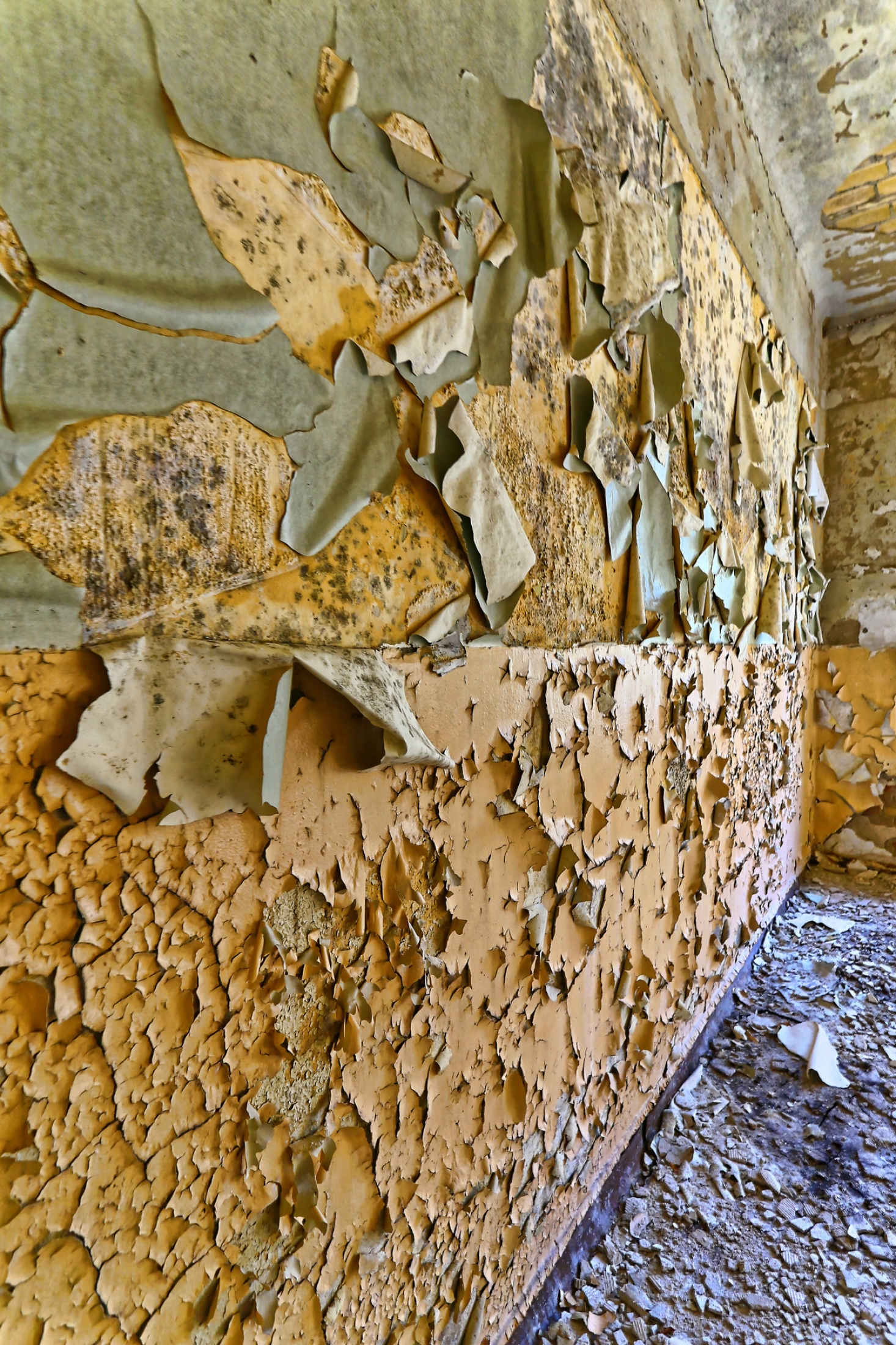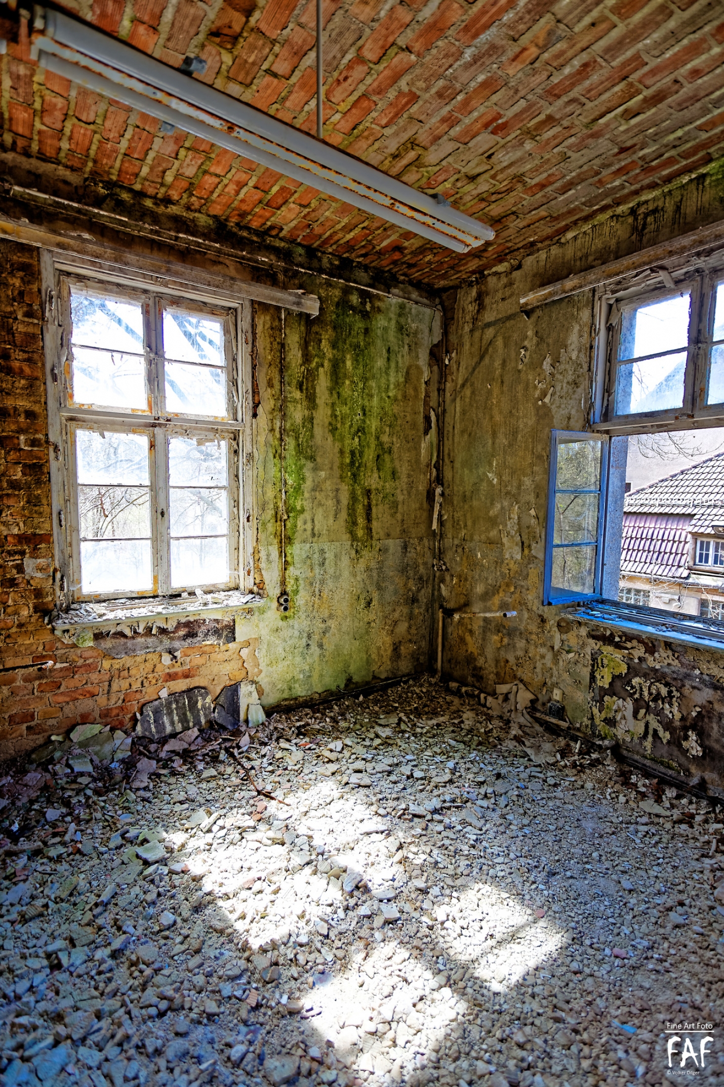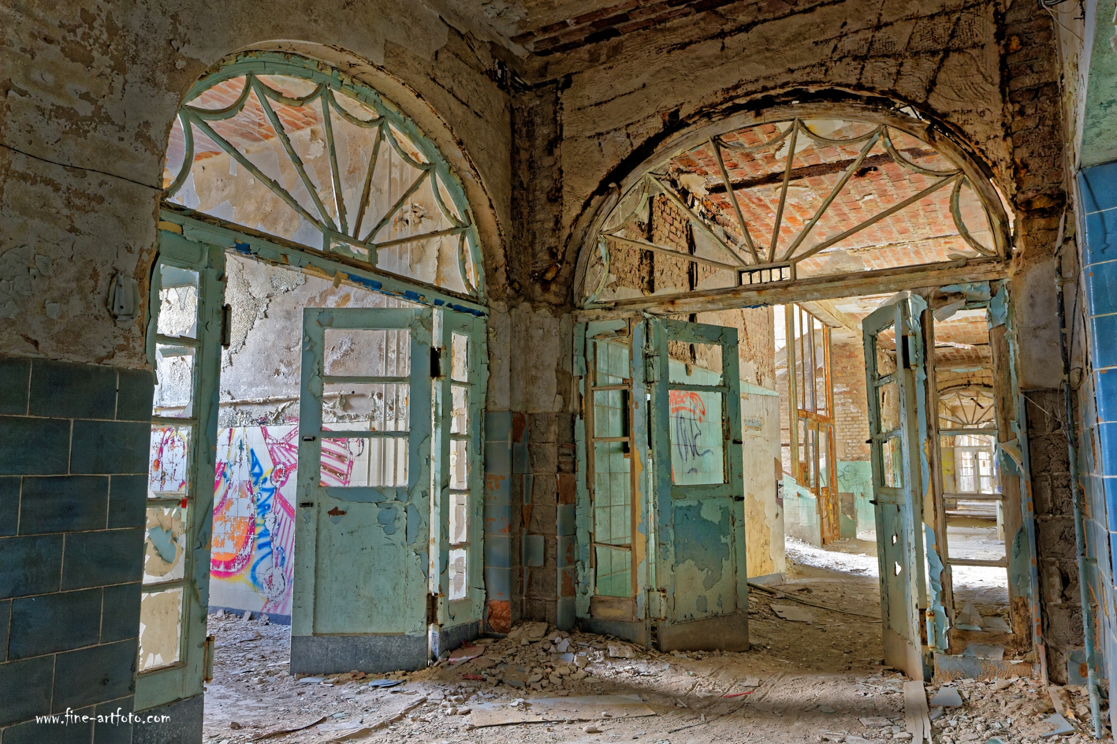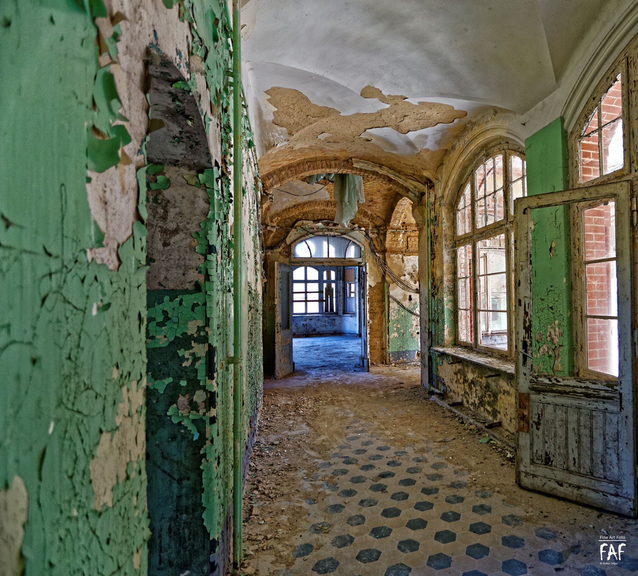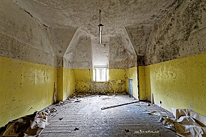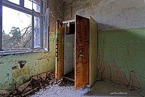Beelitz today is corridors and flaking color. Interior, lamps and beds are now fully lost and disapeared.