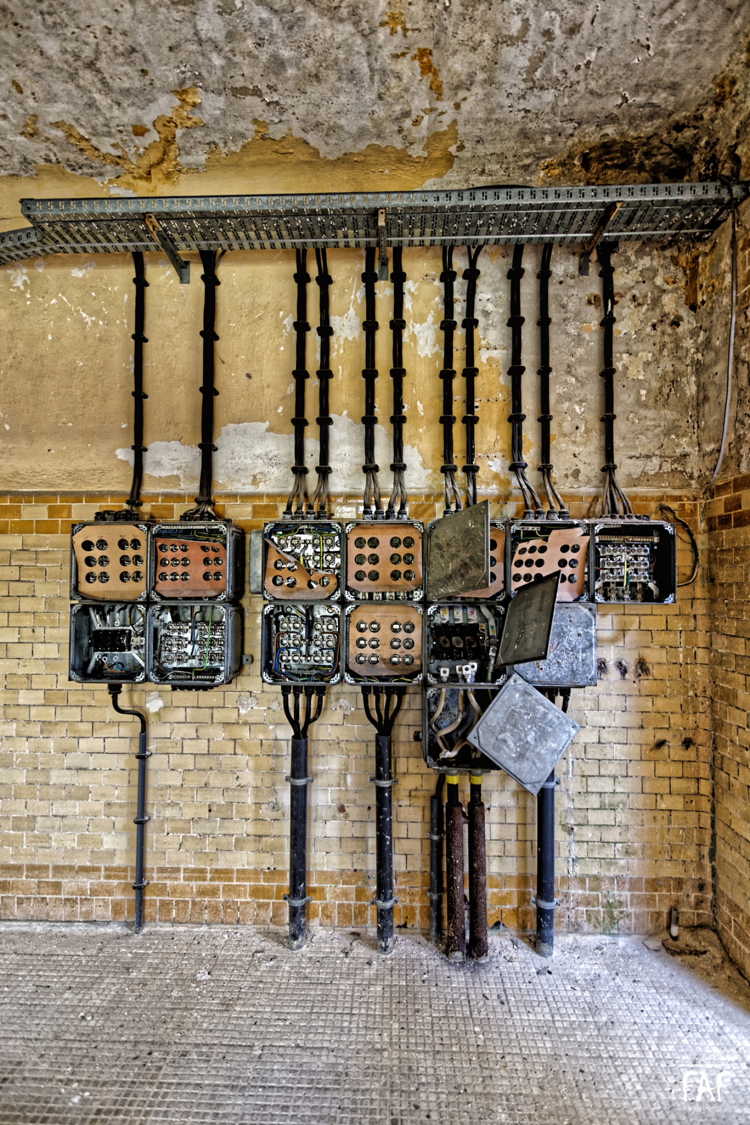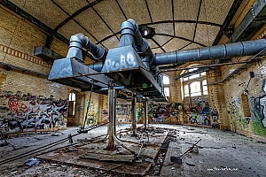Given up in 1994. The owners went bankrupt in 2001. The place is so vast that, after being deserted could not be protected. Soon the typical Berlin Problem emerged. Vandalism, Graffiti (but not that much), and dropouts were roaming the place. Comparing photos over the years show the strong destruction of this place.