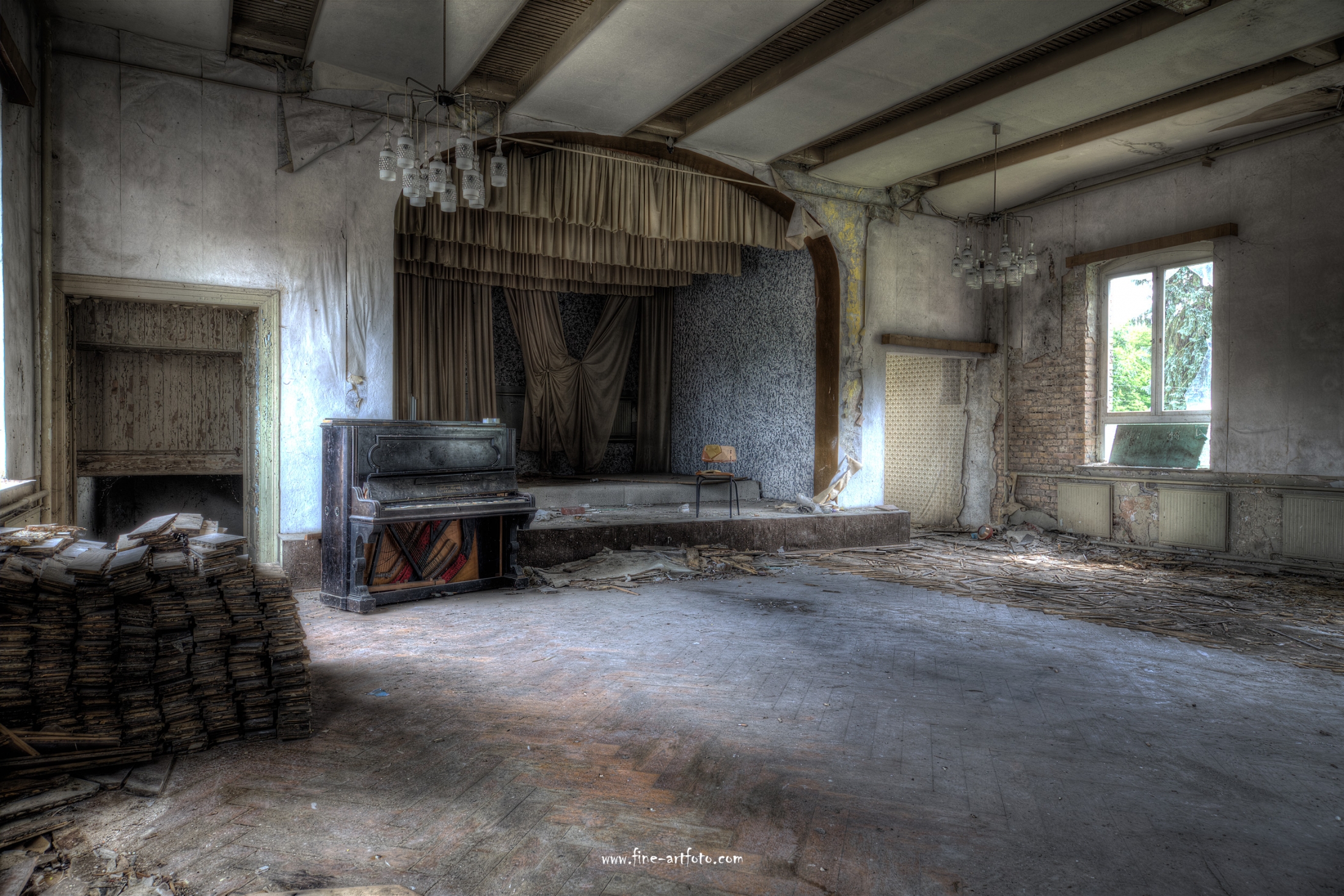 A small former cozy village far in the German outback close to a calm brook. Even being an idyllic place their people partly left the grounds. What is wrong with this place when even the only common and social place is lost, where once weddings, parties and canivals have been celebrated. Future where are you ?