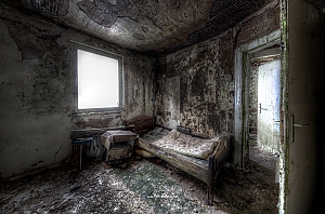 A small city in the mid of Germany with a lot of bankrupt hotels. An ailing area. To poor to even clear the bankrupt house. If a roof leaks this is what it means to decompsition and rotting. The home of mold.