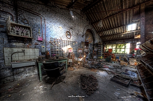 A small /medium enterprise surely run for a generation long, building boilers, just suddenly could not hold up with competition and the fast dvelopments in engeneering. So progress ate it up. Boss and empoyees left the place on their last working day and since then the place is fogotten. The place is full of details and it is still very easy to imagine the place and its hierachy of people working there.