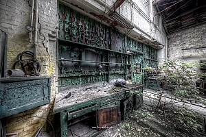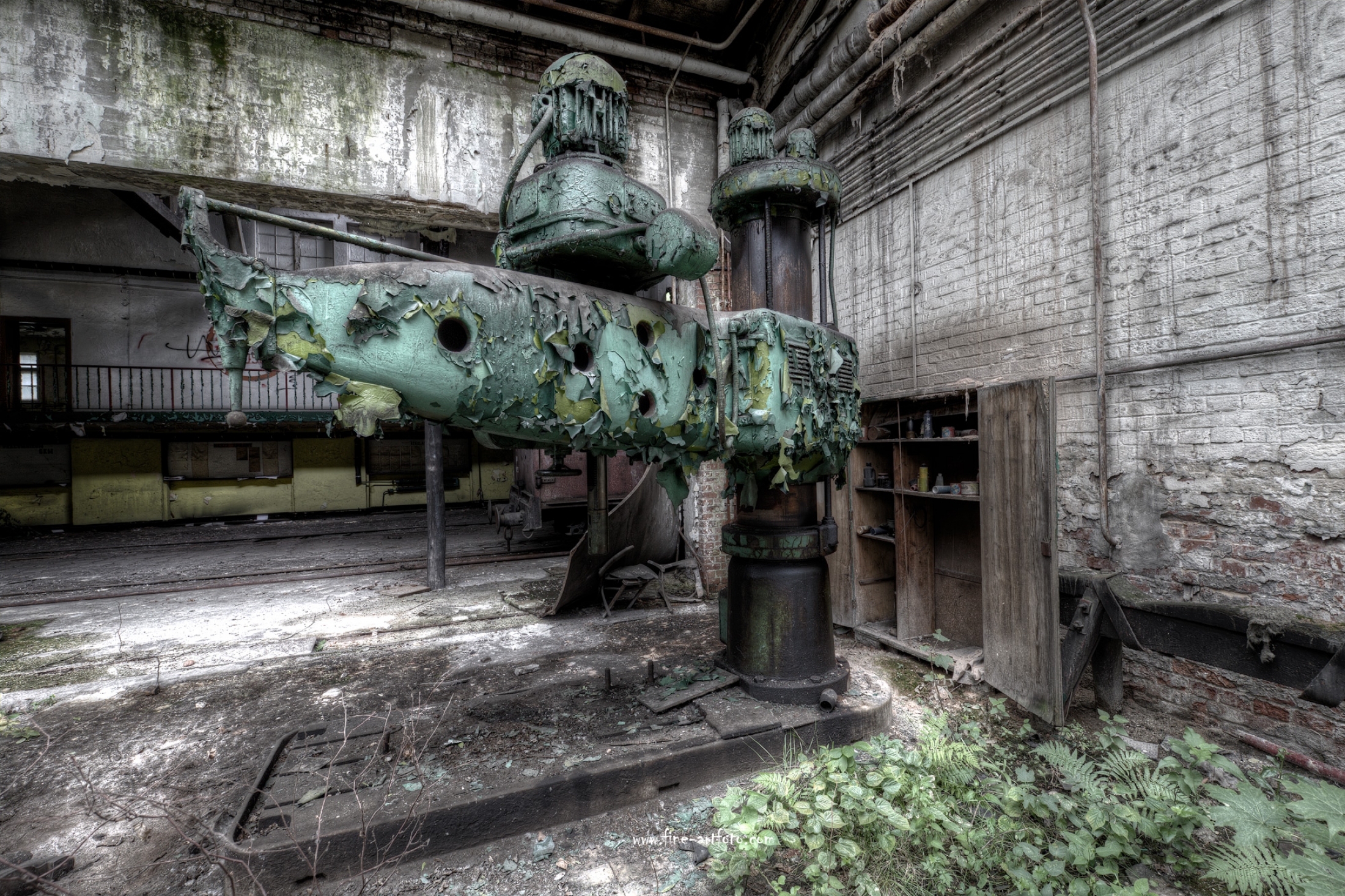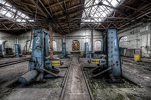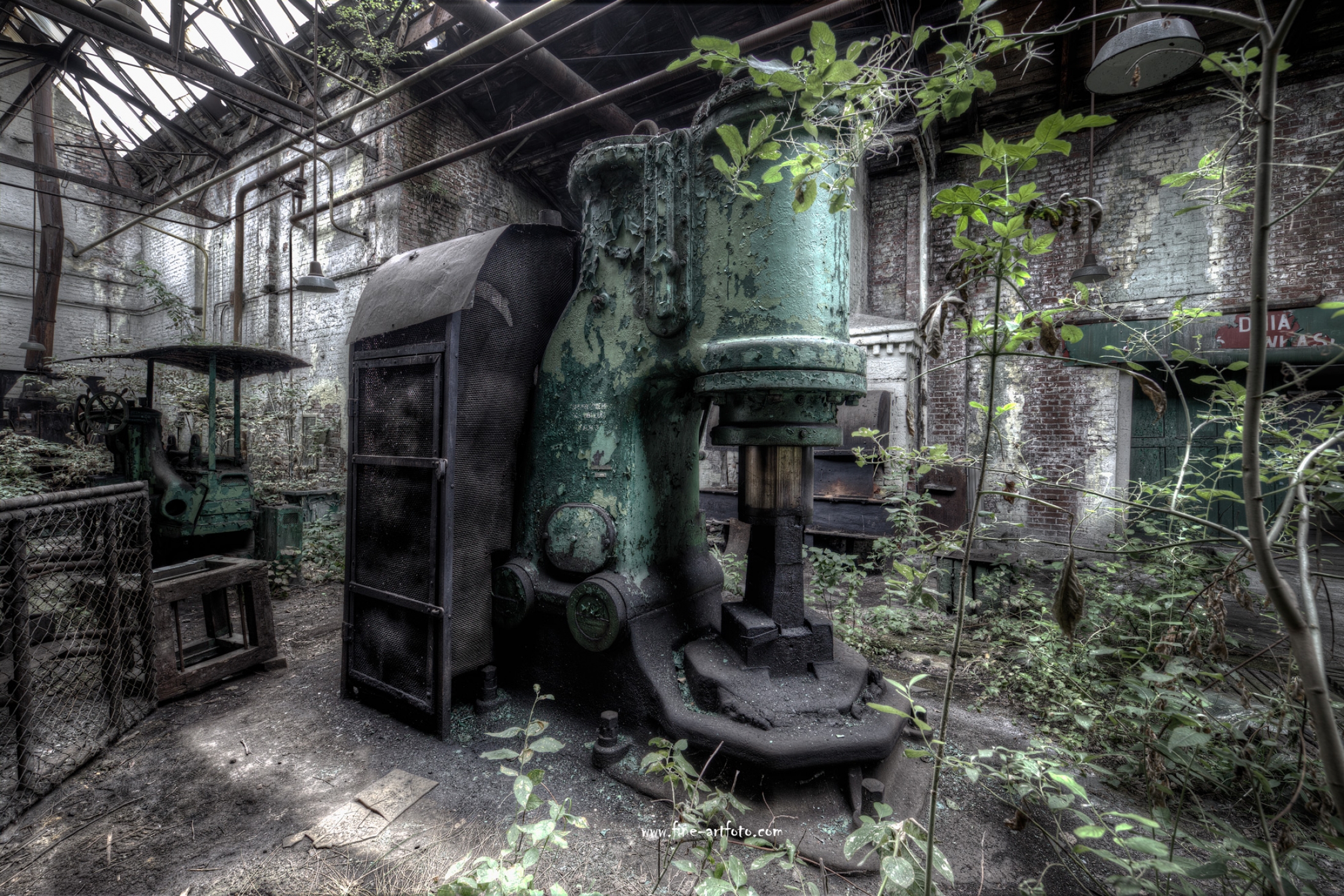 Once a very busy place. Engines coming in and out bringing in wagons and other rail depend stuff. Here all the hardware work smelting, welding, drop forging and smithing have been done to keep them rolling. A change in gauge and all changed. Suddenly out of business. So sudden that all is still there between all those young trees, fighting back for mother nature.