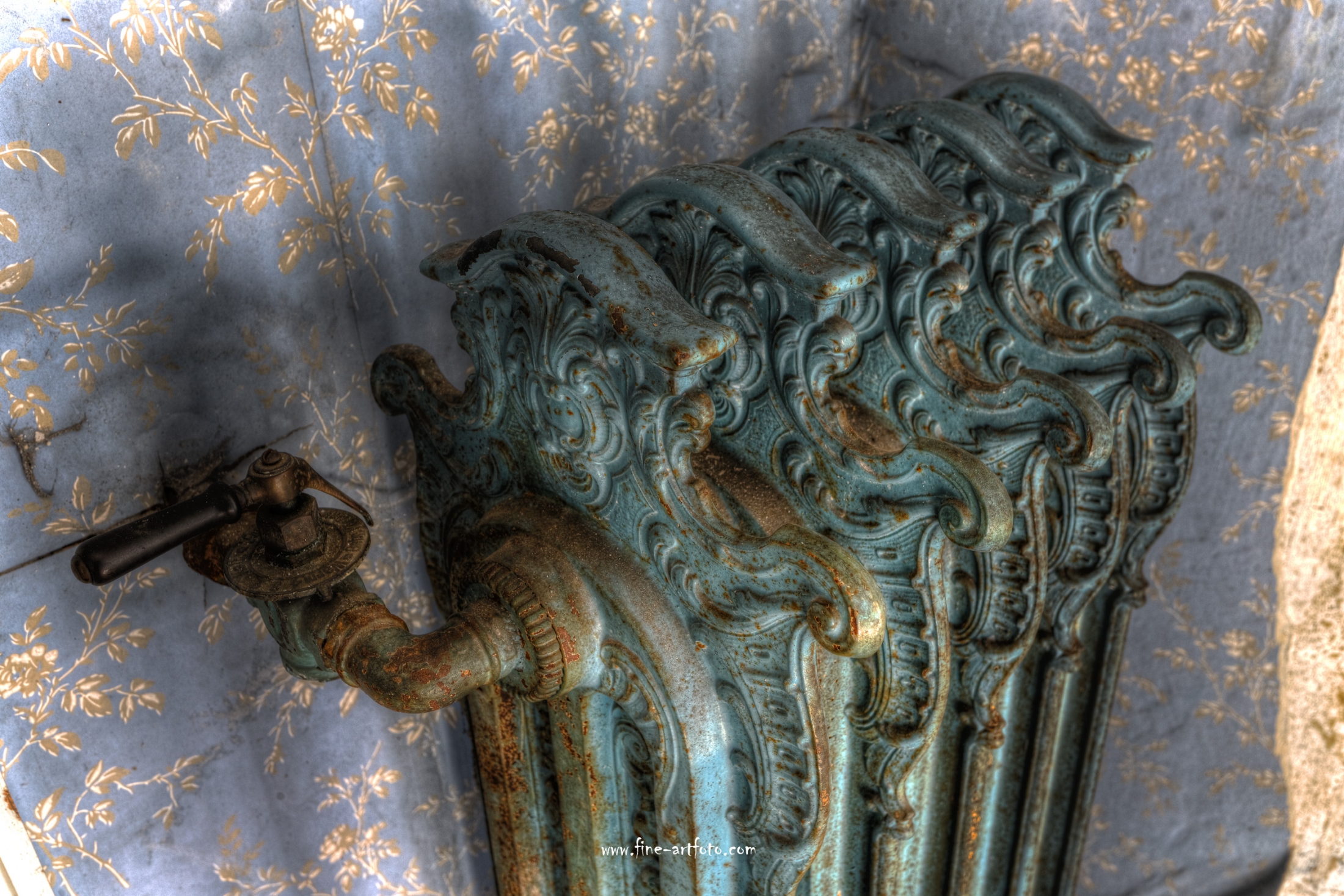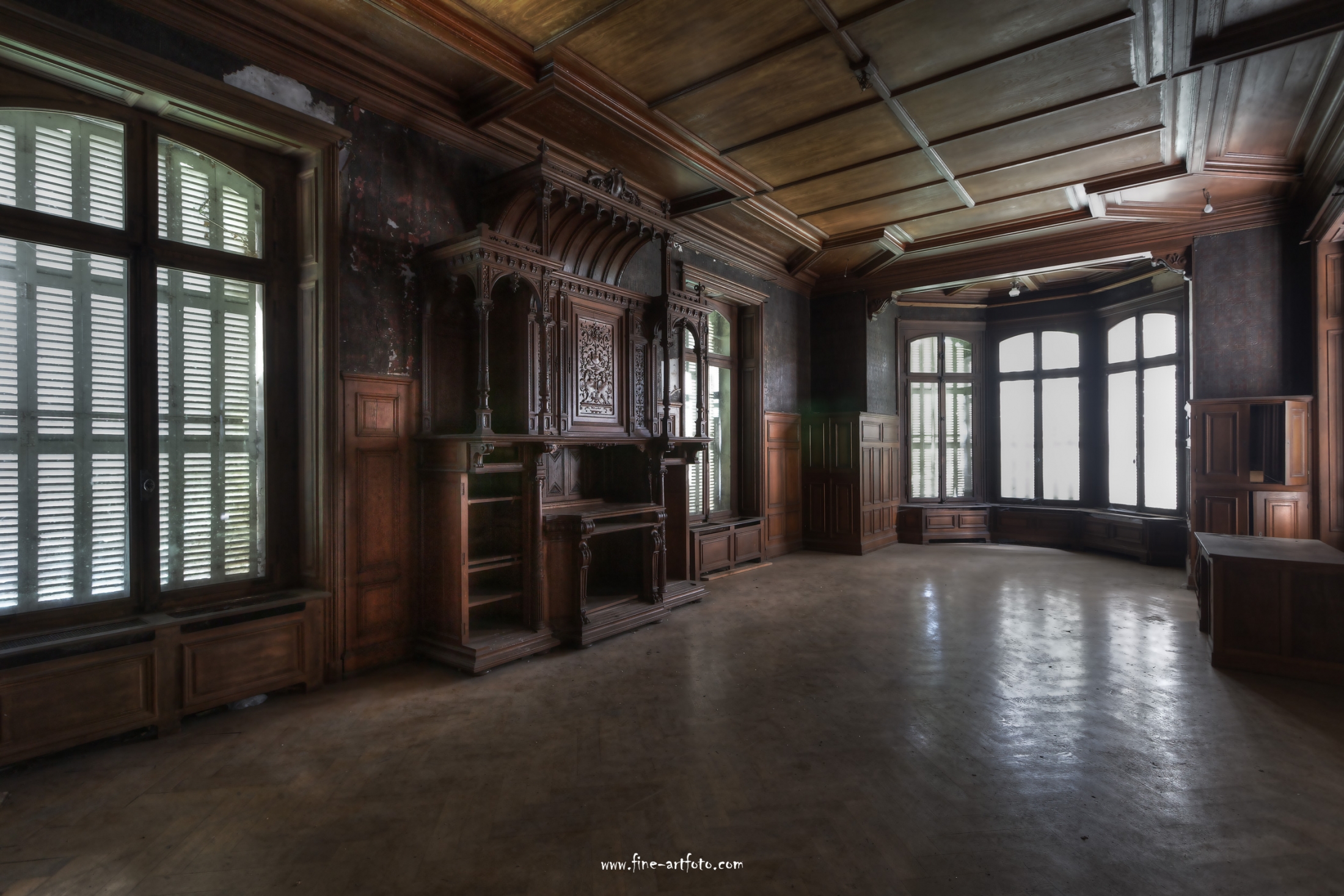 However, for the long time of not having been inhabited the house is in a very good condition still. No Graffiti or vandalism (at least to my eyes). It looks like you could move in; some cleaning and repairing here and there. As usual with Urbex Icons I was not alone in the building, one more phototeam was on site. Although the Chateau is called Lumiere, since all windows are closed and bolted partly, the building is very dark and hard to photograph.