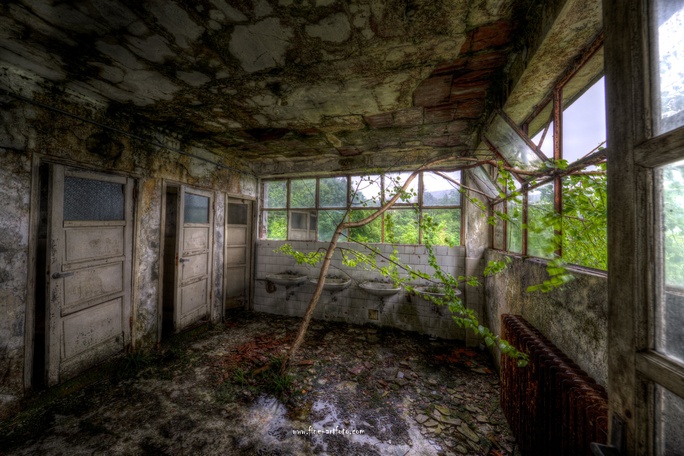 Somewhere far out in an idyllic lakeview surrounding, hidden in dense foliage lies a catholic children sanatorium. Long abandoned. Rain is seeping through all roofs and floors. You can still feel the stiff and strict ruling that governend the place. A deep devoutness still percolates through all rooms and and now, since the place is so innocently calm you are still touched with belief and a higher spirit.