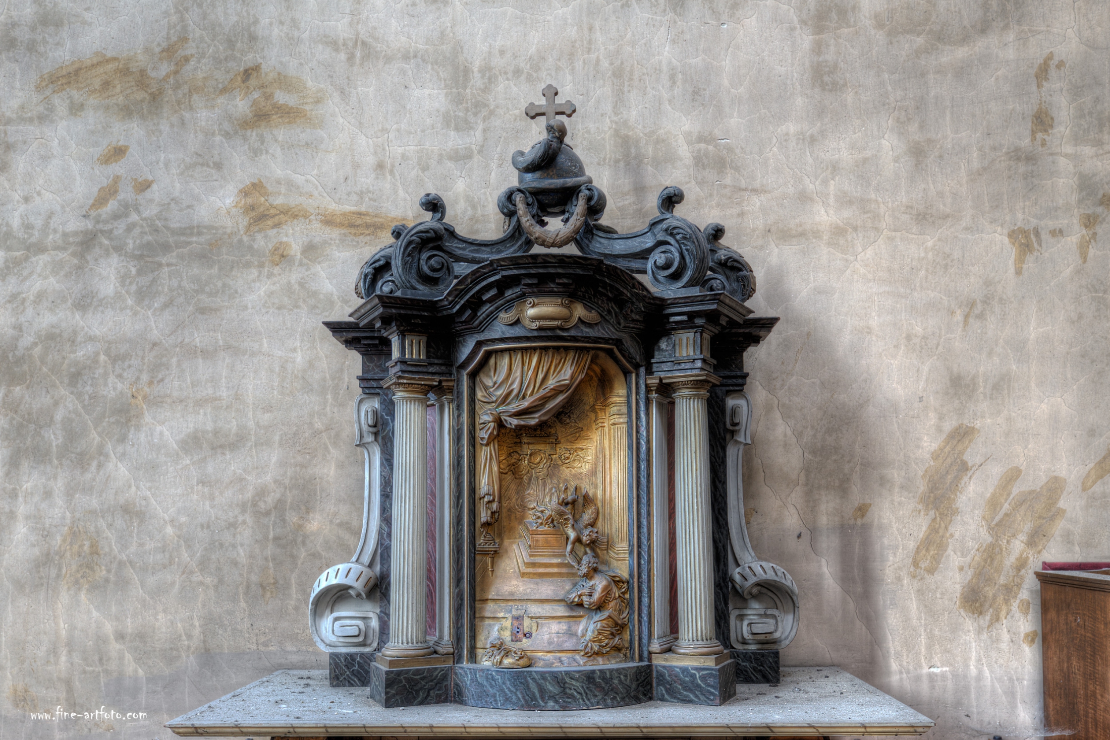 Somewhere in Europe in a major city a loss in believe lead to a lost dome. The dome has the usual entrapped moisture problems. Also the weight of the constructions shows its wear and tear signs. But you can still see the greatness of the building and somehow hear the organ playing.