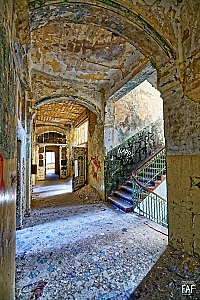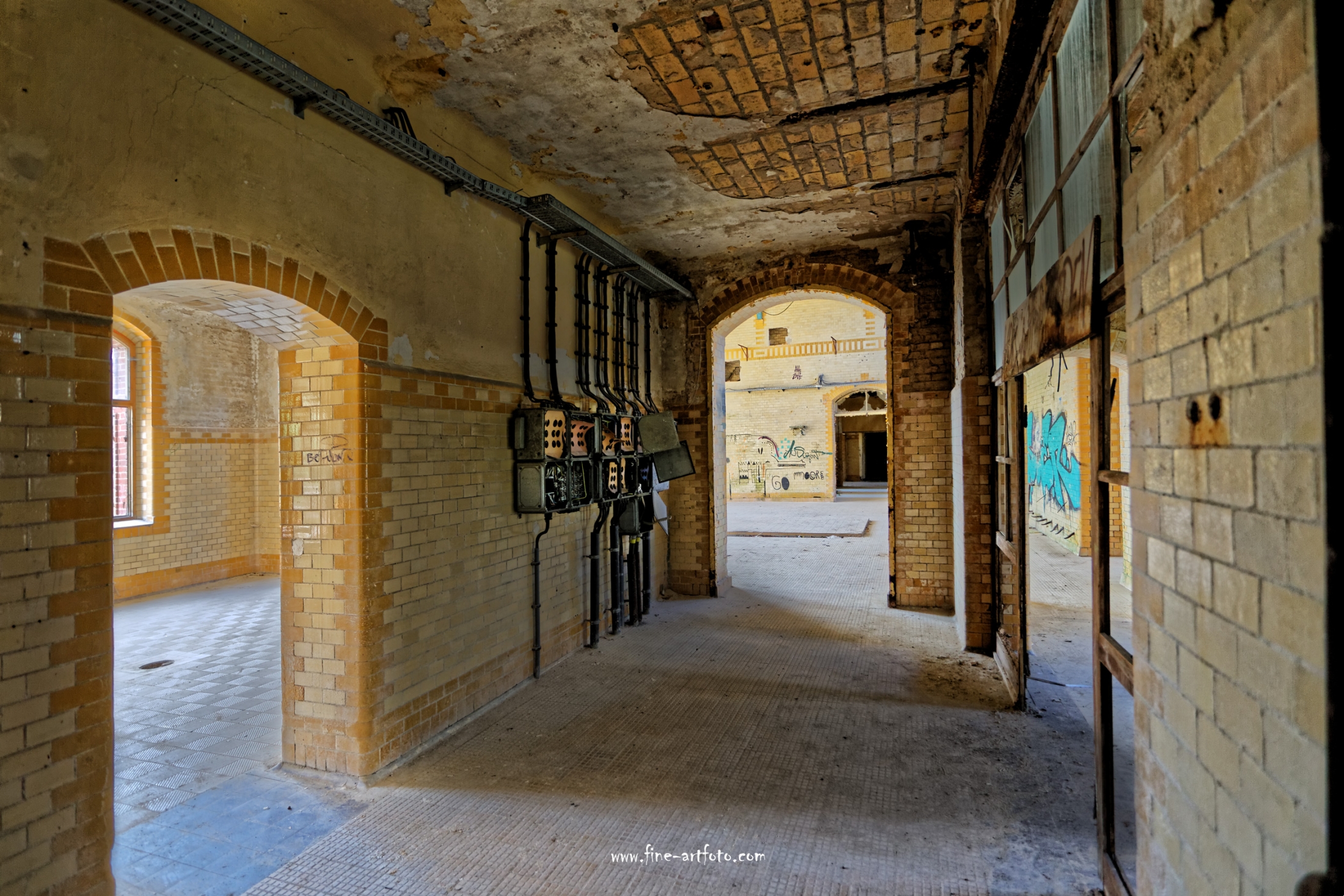 Beelitz today is corridors and flaking color. Interior, lamps and beds are now fully lost and disapeared.