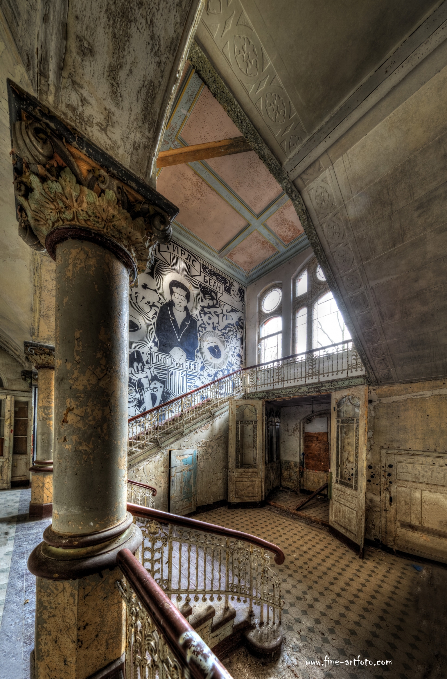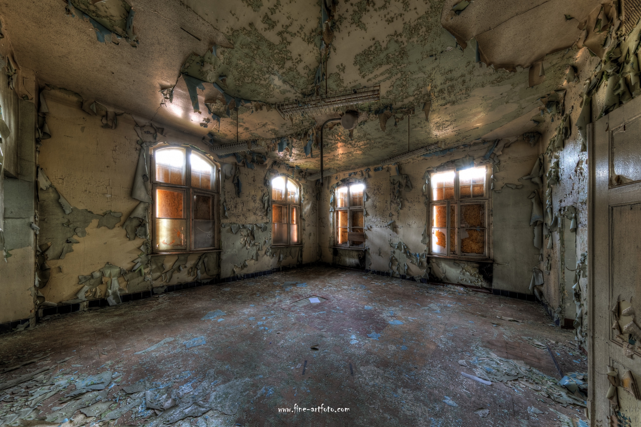 Beelitz today is corridors and flaking color. Interior, lamps and beds are now fully lost and disapeared.
