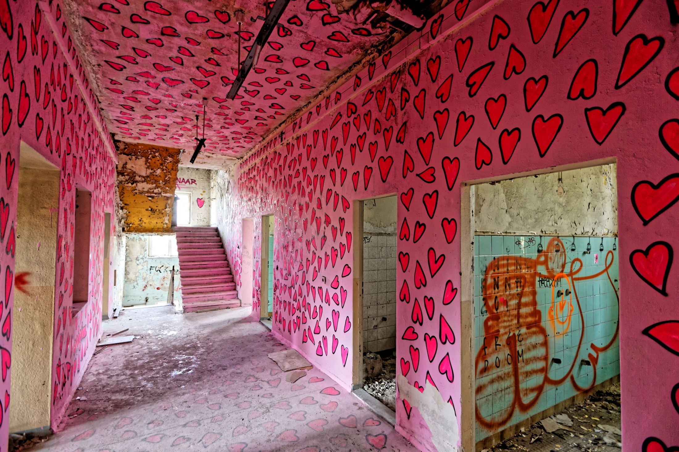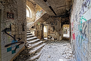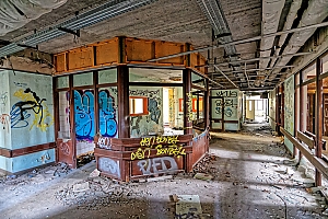 Once a huge childrens clinic now a shattered and abandoned place that was long time free accessible. For this reason Berlin´s artists and sprayers used this site to show their art. Even Graffiti artists from switzerland used this place to create their huge pictures.